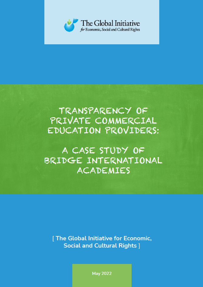 The Global Initiative for Economic, Social and Cultural Rights (GI-ES CR) works to improve and promote transformative change to end endemic problems of social and economic injustice through a human rights lens. Its work focuses on strengthening public services for the enjoyment of economic, social and cultural rights, and promotes transparency and accountability in the delivery of education. It pays particular attention to commercial education providers, whose role in education systems has grown rapidly.